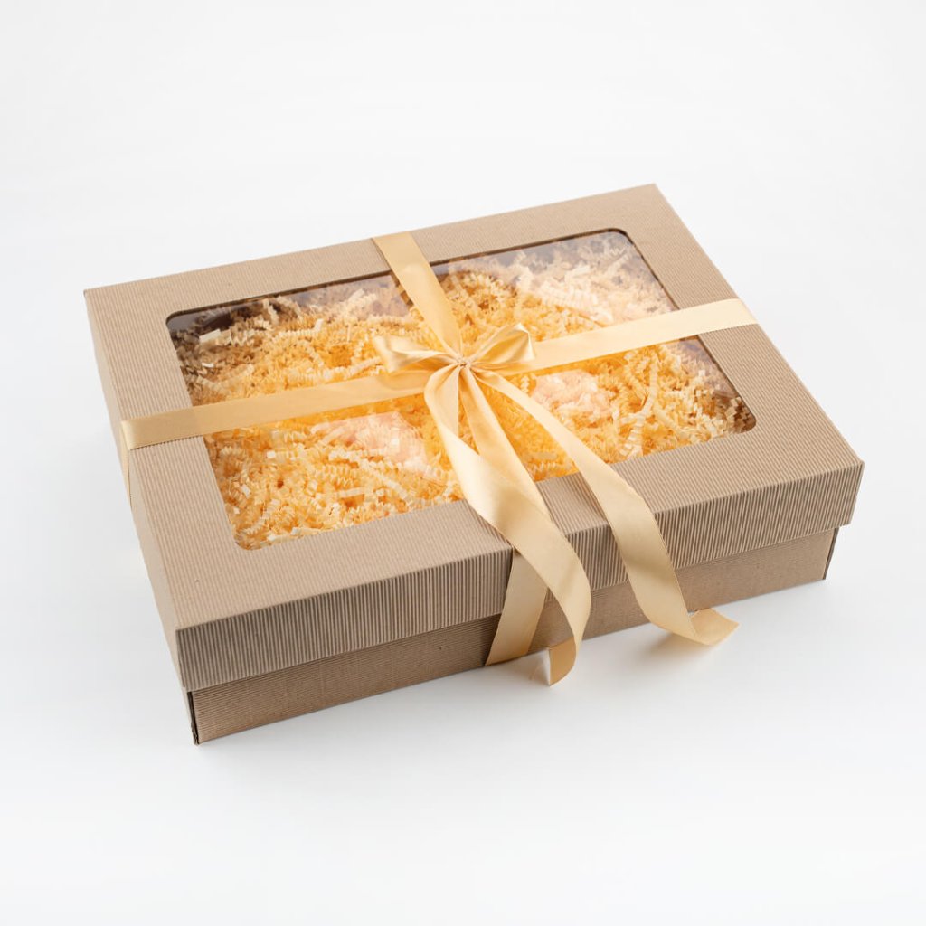 Tato velká dárková krabice s okénkem je ideální pro balení větších dárkových sad a produktů. Díky průhlednému víku krásně vynikne obsah – ať už jde o kosmetiku, delikatesy, víno, svíčky nebo jiné luxusní výrobky. Dárková krabička je vhodná pro firemní dárky, vánoční kolekce, svatební výslužky nebo reprezentativní dárkové balíčky pro zákazníky a obchodní partnery.