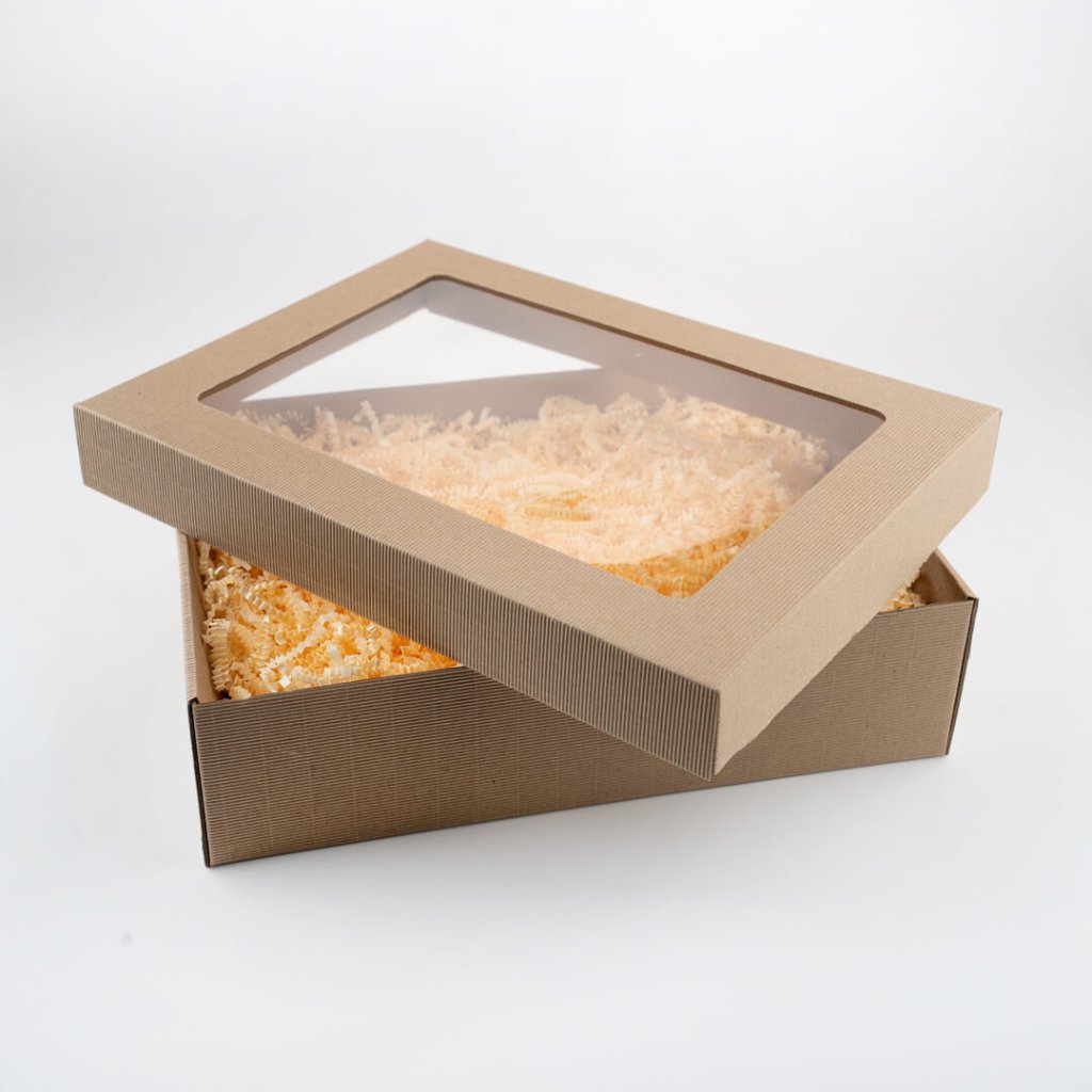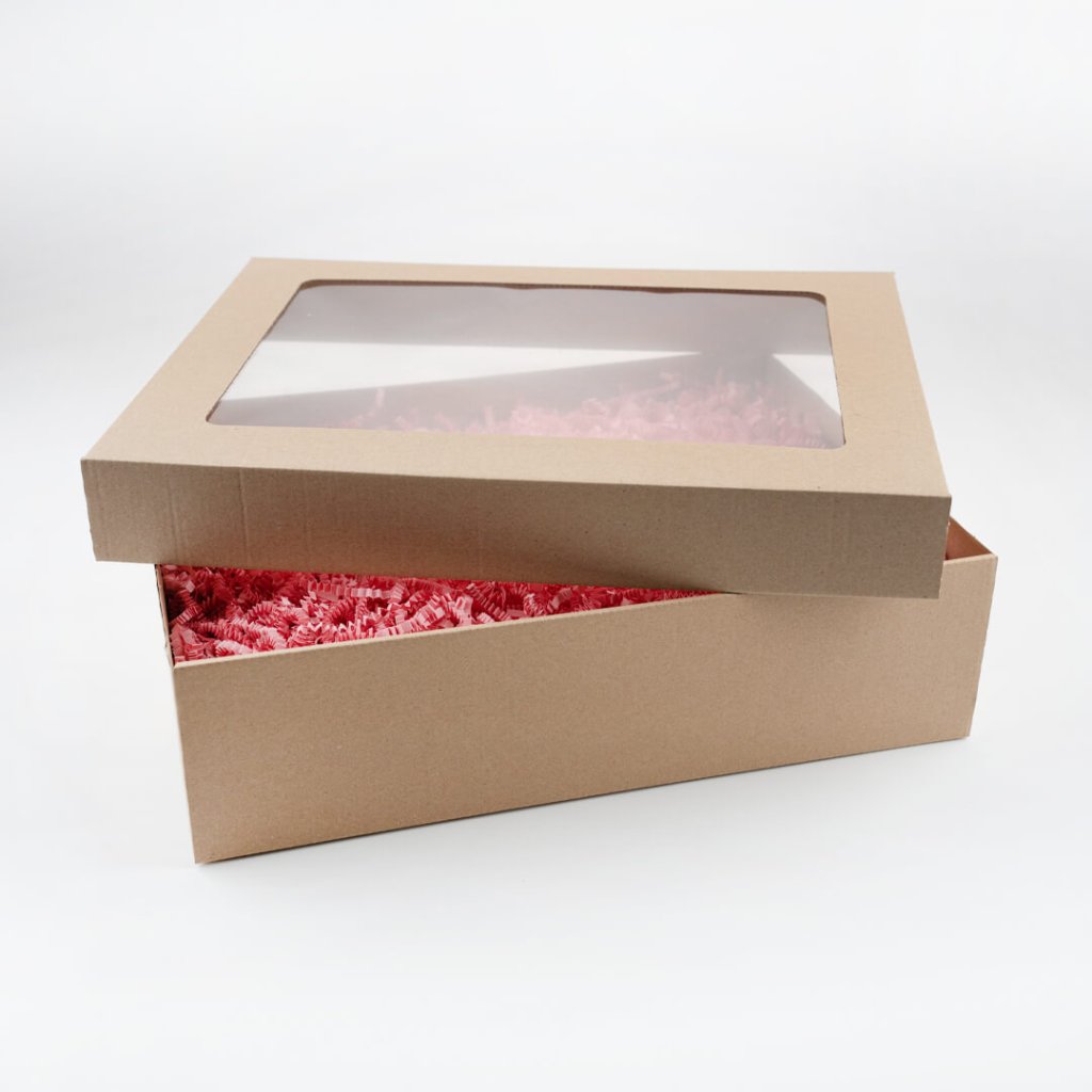 Papírové krabičky s okénkem působí elegantně a profesionálně, přitom jsou lehké a snadno se s nimi manipuluje. Velká dárková krabice s víkem a samostatným dnem umožňuje snadné skládání i opakované použití. Díky kvalitnímu provedení je pevná, udrží i těžší produkty a ochrání jejich obsah. Průhledné okénko navíc přidává balení luxusní vzhled a zákazník ihned vidí, co se uvnitř nachází.