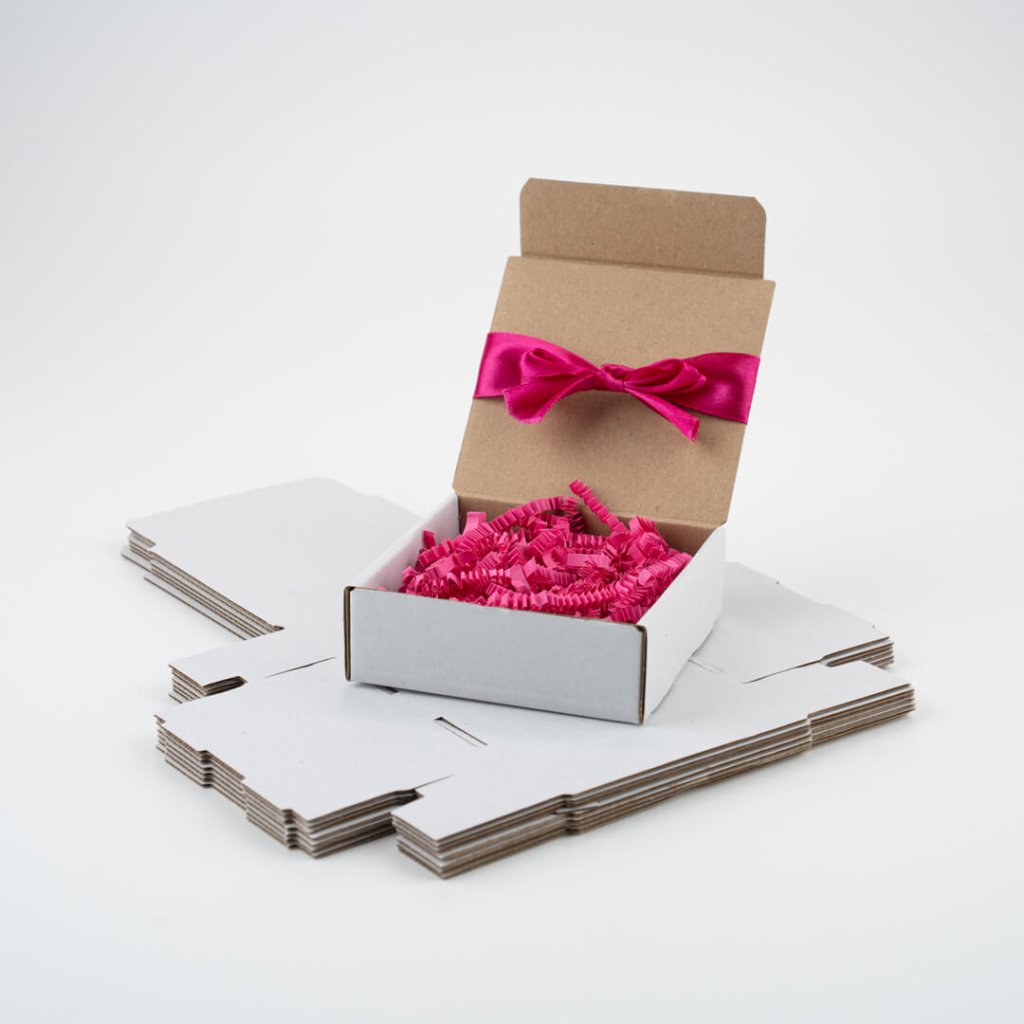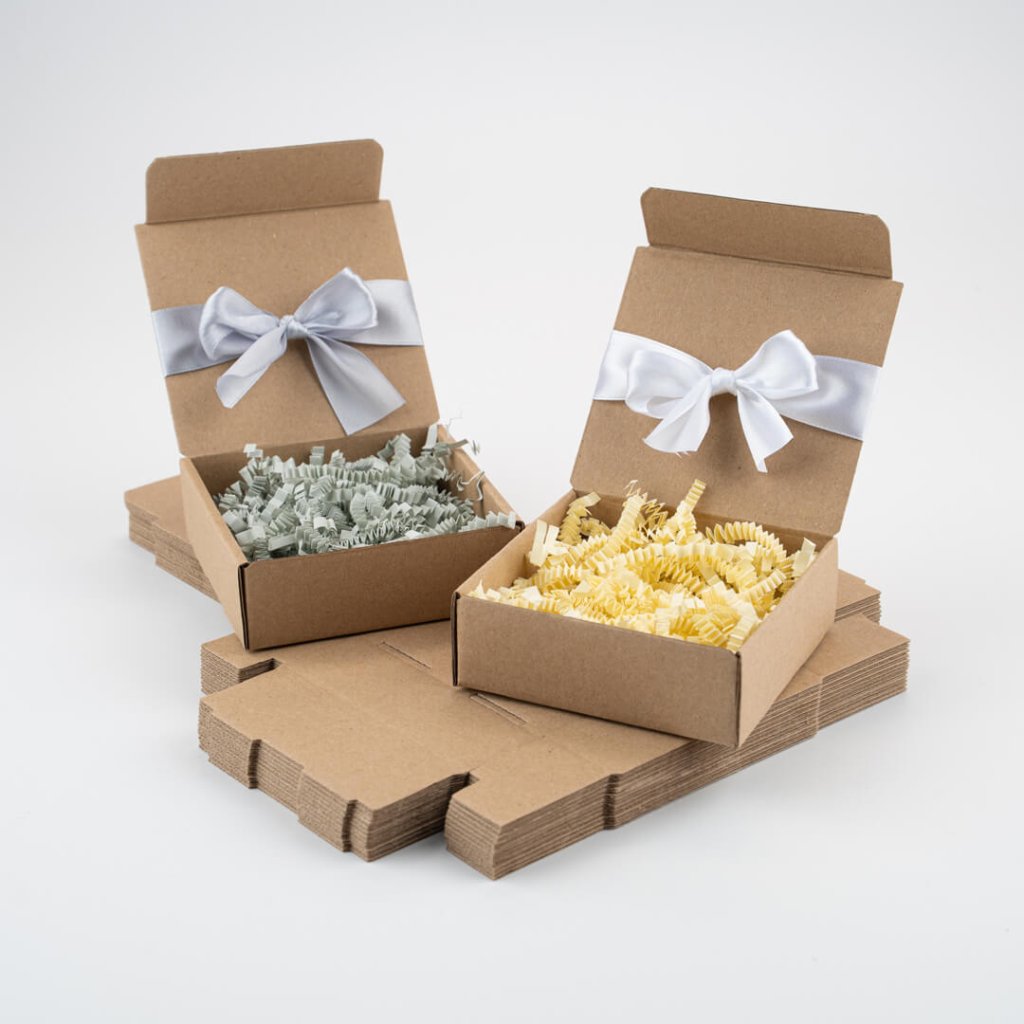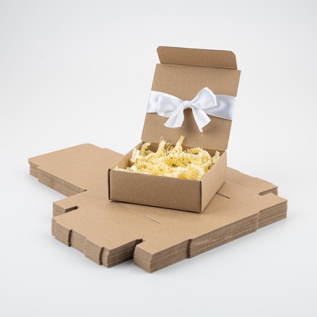 - Hnědá mini krabička – přírodní vzhled, skvěle ladí s ekologickým a rustikálním stylem balení.